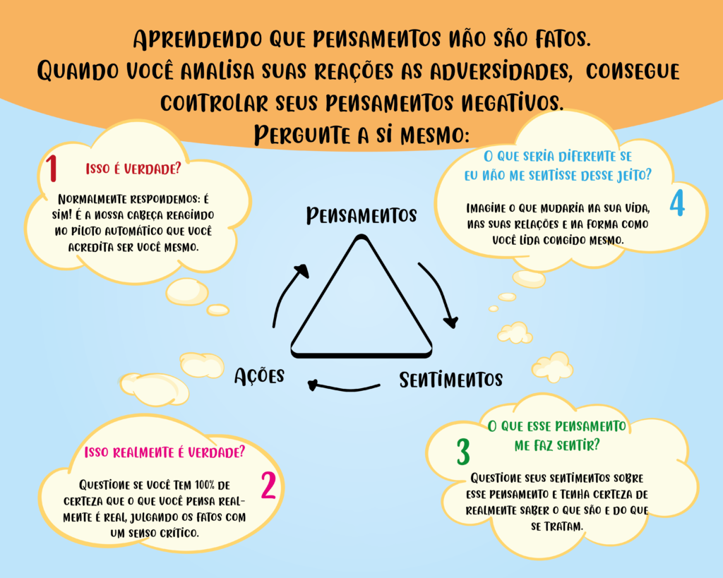 Um bom começo é entender o processo negativo que pensamentos irreais podem proporcionar. Como citamos anteriormente, é através do fluxo de pensamentos que são desenvolvidas as nossas emoções. No caso de pensamentos sem fundamento na realidade, produzimos emoções negativas, que quando expressadas se transformam em ações premeditadas ou impulsivas que levam a arrependimentos e mais pensamentos, transformando tudo num ciclo repetitivo.
